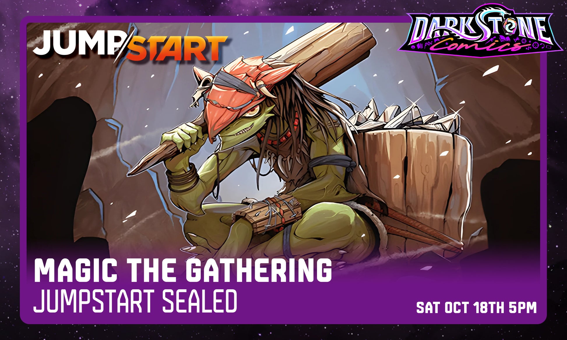 Crack, shuffle, and play! Jumpstart 2025 is here, and we’re celebrating with a Jumpstart Sealed Event at Darkstone Comics. Players will receive two Jumpstart 2025 packs, mash them together, and hit the battlefield with a ready-to-go deck. No deckbuilding stress—just fast, fun, and exciting Magic!